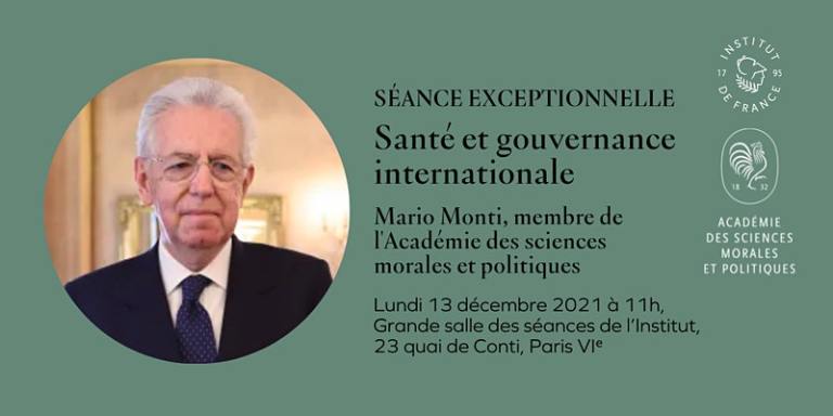 En présence de Madame l’Ambassadeur d’Italie Teresa Castaldo, de M. Alain Lamassoure, membre du mouvement européen France, et de M. Jean Veil, l’Académie a accueilli Mario Monti pour évoquer, depuis sa position de Président de la Commission pan-européenne de la santé et du développement durable de l’OMS, ce que pourrait être une gouvernance internationale en mesure d’intervenir de manière coordonnée pour mettre en œuvre le concept One Health (santé globale). Le mandat de cette Commission, constituée de 19 experts et responsables des domaines concernés – politique, économie, finances, environnement et santé – est de tirer des leçons des réactions que les systèmes de santé des différents pays ont opposées à la pandémie de Covid-19 et de formuler des recommandations quant aux investissements et aux réformes visant à améliorer la résilience des systèmes de santé et d’aide sociale. M. Monti est revenu sur les recommandations adressées aux systèmes nationaux que la commission a présentées en septembre, en lien avec sept objectifs, déclinées en termes d’acteurs, d’instruments et de calendrier. La cinquième, « créer un environnement favorable pour la santé en Europe », revêt une grande actualité en 2022. Partisan des « règles d’or », M. Monti forme le vœu que les membres de l’UE puissent converger vers une règle fondée sur l’investissement et que les institutions européennes décident des grandes priorités des investissements à faire en matière de santé, de transition numérique et de transition énergétique. Rendant hommage à Jean-Claude Trichet pour la manière dont il a construit l’union monétaire en déclarant que la monnaie européenne devait être associée à la monnaie nationale la plus forte, il a rappelé que, « dans le domaine le plus sacré, on a compris que pour avoir de la souveraineté, il fallait exercer la souveraineté en commun ». S’agissant de l’amélioration de la gouvernance internationale, il a évoqué le besoin d’imaginer des instruments plus proches de ceux que l’UE a vis-à-vis de ses membres, possédant une flexibilité suffisante et des mécanismes autorisant des décisions souveraines dans l’élaboration des politiques sanitaires. Lors de son sommet le 31 octobre (sous présidence italienne), le G20 n’a pu créer un groupe santé-finances – la Chine et le Brésil s’y opposant – mais une task force composée des ministres des deux composantes. Parce ce qu’elle est une cassure dans un bien public global, la santé publique, la crise pandémique est en train d’avoir une répercussion importante sur les nouvelles formes de gouvernance mondiale.