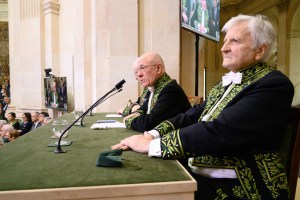 Remise de son épée d’académicien à Bernard Stirn par Jean-Marc Sauvé, vice-président honoraire du Conseil d’Etat.