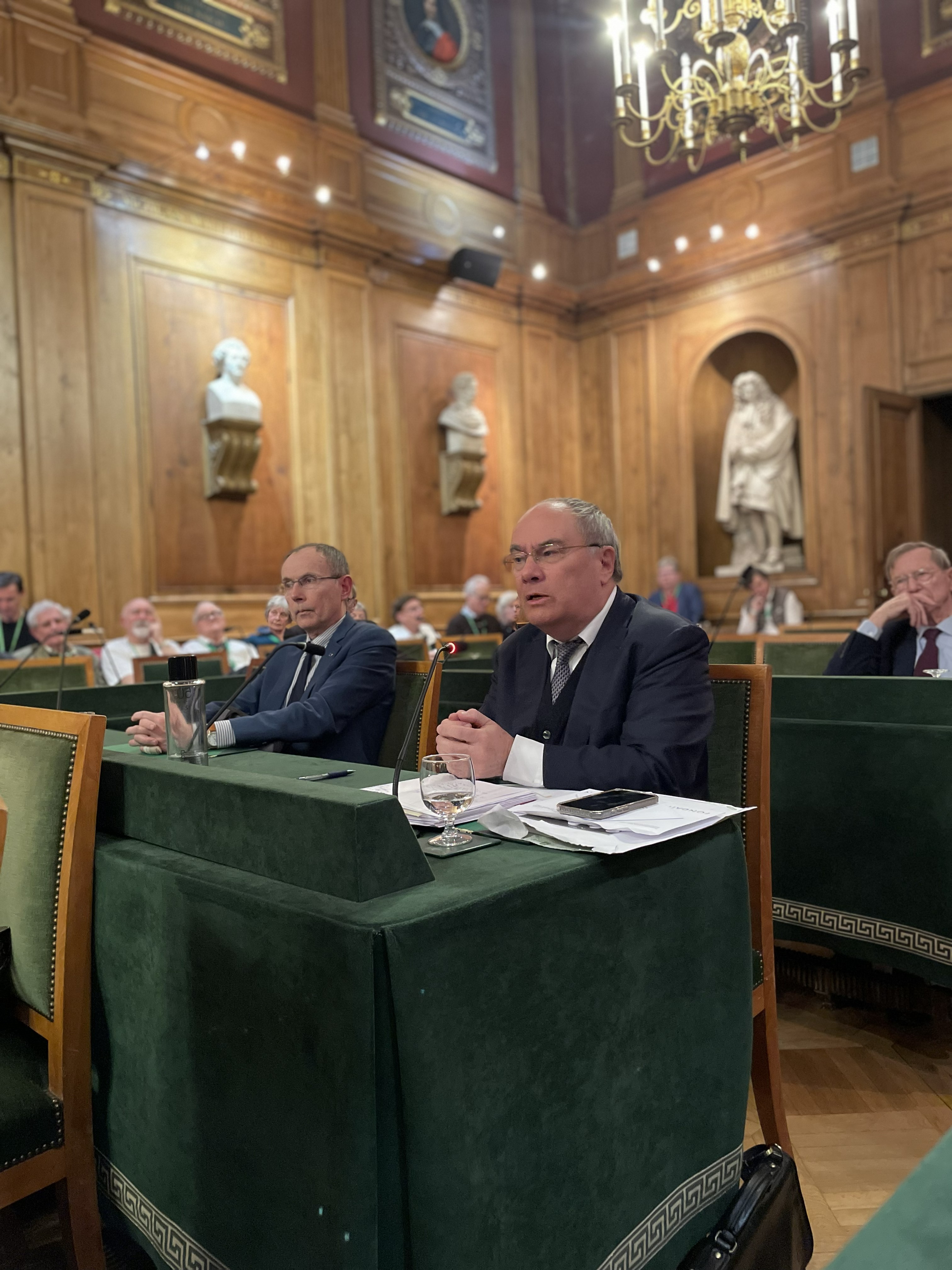 Nous nous sentons profondément honoré — soyez-en assurés — d’être aujourd’hui admis au sein de votre illustre assemblée, qui incarne de manière exemplaire la haute tradition de l’esprit français, en particulier lorsqu’il se met au service des principes de l’éthique et des affaires du bien commun.
