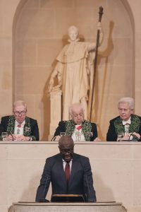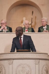 L’Académie est réunie en séance solennelle sous la coupole pour la cérémonie d’installation du docteur Denis Mukwege, comme membre associé étranger au fauteuil laissé vacant par le décès de Javier Pérez de Cuéllar. La cérémonie est ouverte par le président de l’Académie, Jean-Robert Pitte.