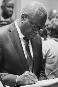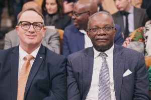 Après avoir remercié Louis Vogel pour son soutien, Denis Mukwege souligne l’honneur d’occuper le siège de Javier Pérez de Cuéllar, figure majeure de la diplomatie internationale et cinquième Secrétaire général des Nations Unies.