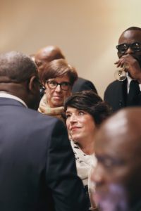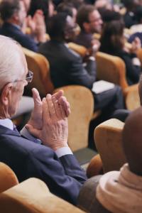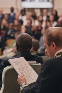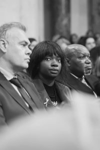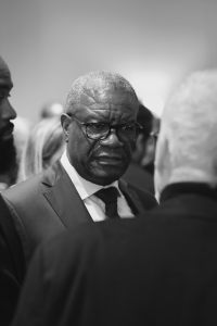 Louis Vogel prononce ensuite le discours d’accueil de Denis Mukwege, surnommé « l’homme qui répare les femmes » du fait de son engagement auprès des femmes victimes d’exactions sexuelles et de son combat auprès des instances internationales pour que les viols collectifs soient reconnus non pas comme un simple dégât collatéral mais comme une véritable arme de guerre.