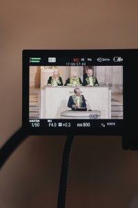Deux extraits du documentaire réalisé par Thierry Michel et Colette Braeckman, consacré au travail du docteur Mukwege en République Démocratique du Congo, intitulé « L’homme qui répare les femmes. La colère d’Hippocrate » ont été diffusés avant et après le discours d’accueil de Louis Vogel.