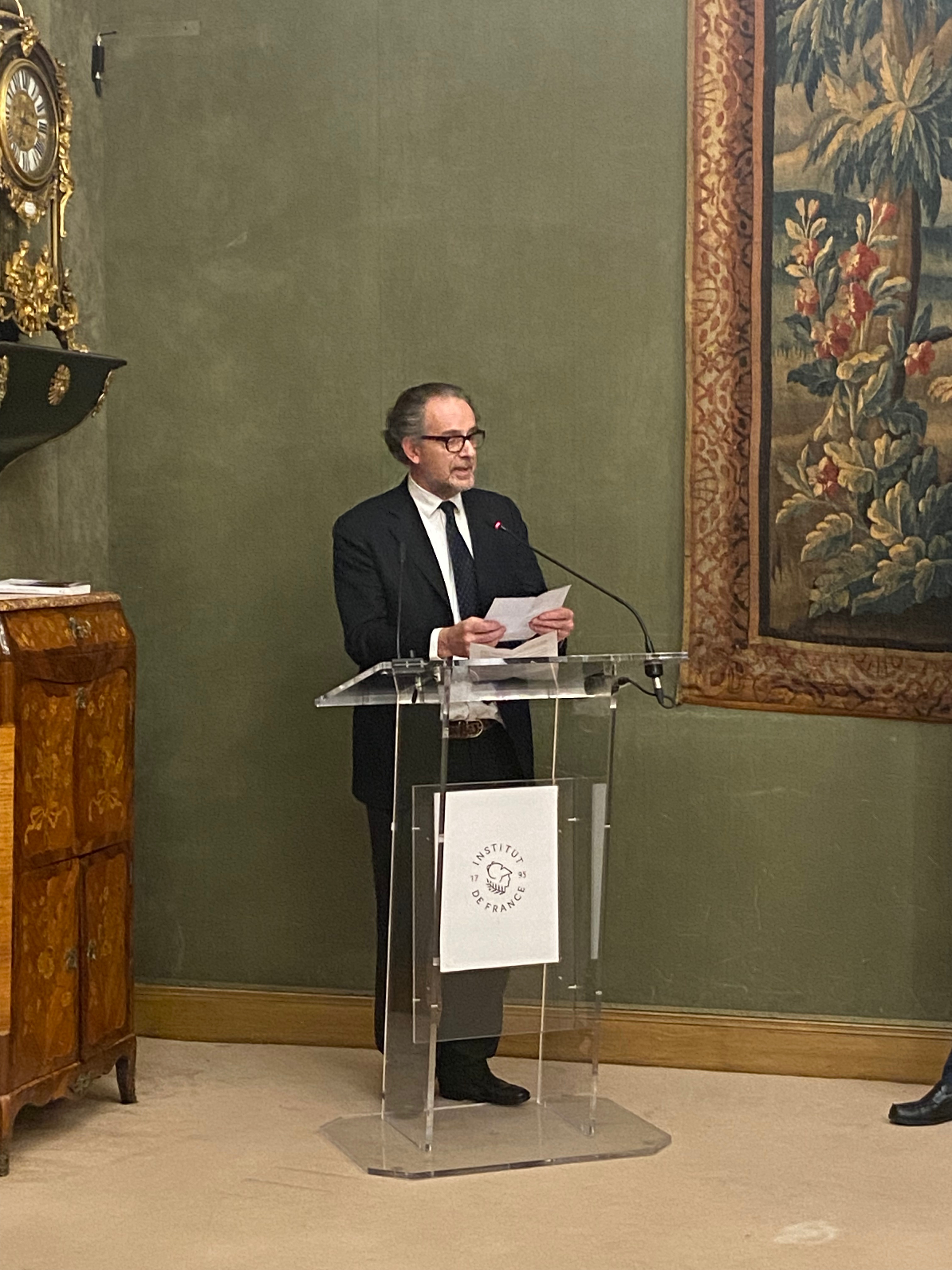 Le Président a ouvert la séance du lundi 16 juin 2025 en donnant lecture du décret du 2 juin 2025, signé du président de la République et approuvant l’élection d’Emmanuel de Waresquiel, élu le 5 mai 2025 au fauteuil n°4 de la section Histoire et Géographie, laissé vacant par le décès d’Emmanuel Le Roy Ladurie. Le Président lui a remis la médaille de l’Académie en signe de bienvenue.