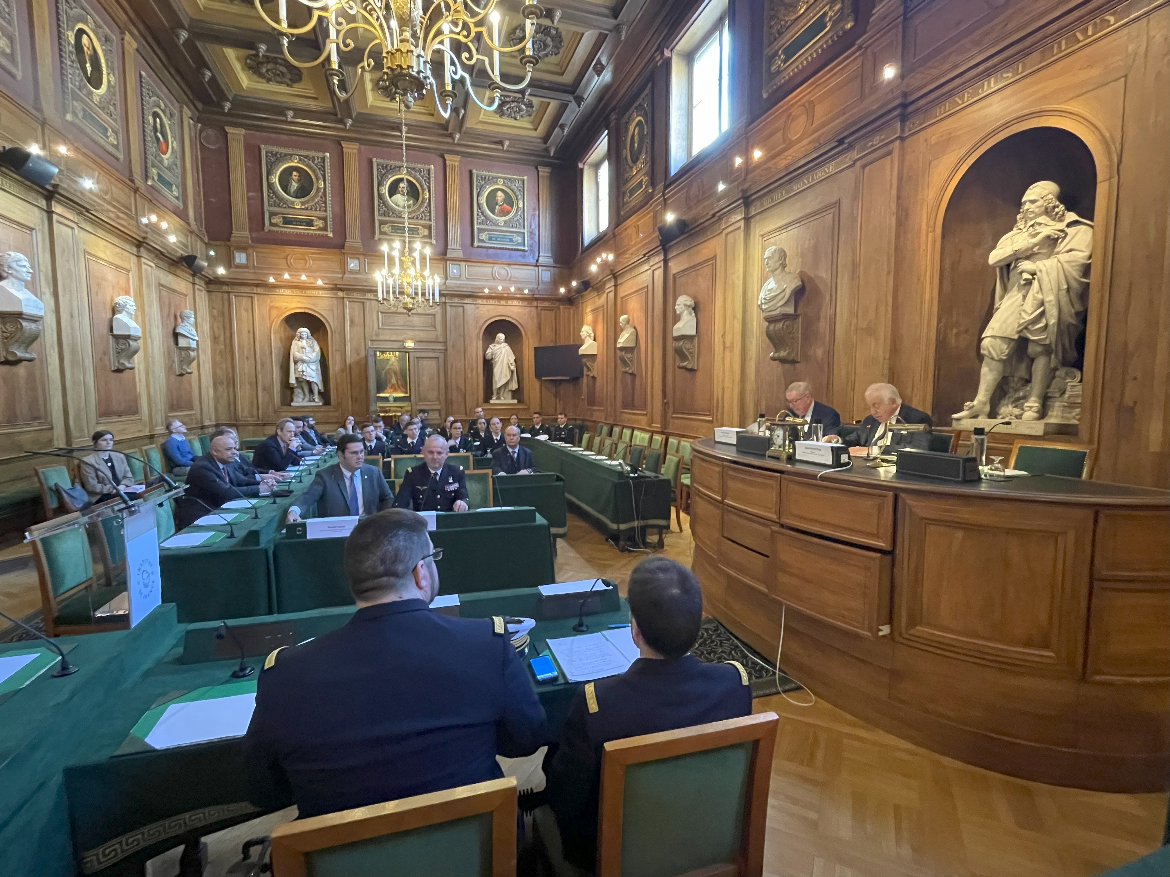 Ce lundi 31 mars était organisé un colloque en hommage au général (2 S) de corps aérien Michel Forget, correspondant de l’Académie élu le 26 octobre 1998 dans la section générale, et décédé en 2020. La conférence s’est tenue, à l’initiative de Benoit Lopez, maître de conférence, et en présence du président Jean-Robert Pitte, du secrétaire perpétuel Bernard Stirn, des académiciens Jean-Claude Casanova, André Vacheron, Haïm Korsia, Yves Gaudemet et Lucien Bély, d’Emmanuel Maury, correspondant de l’Académie qui occupe la place laissée vacante par le décès du Général Forget, du Général Le Saint et d’une quinzaine d’élèves officiers à l’École de l’air et de l’espace de Salon de Provence.