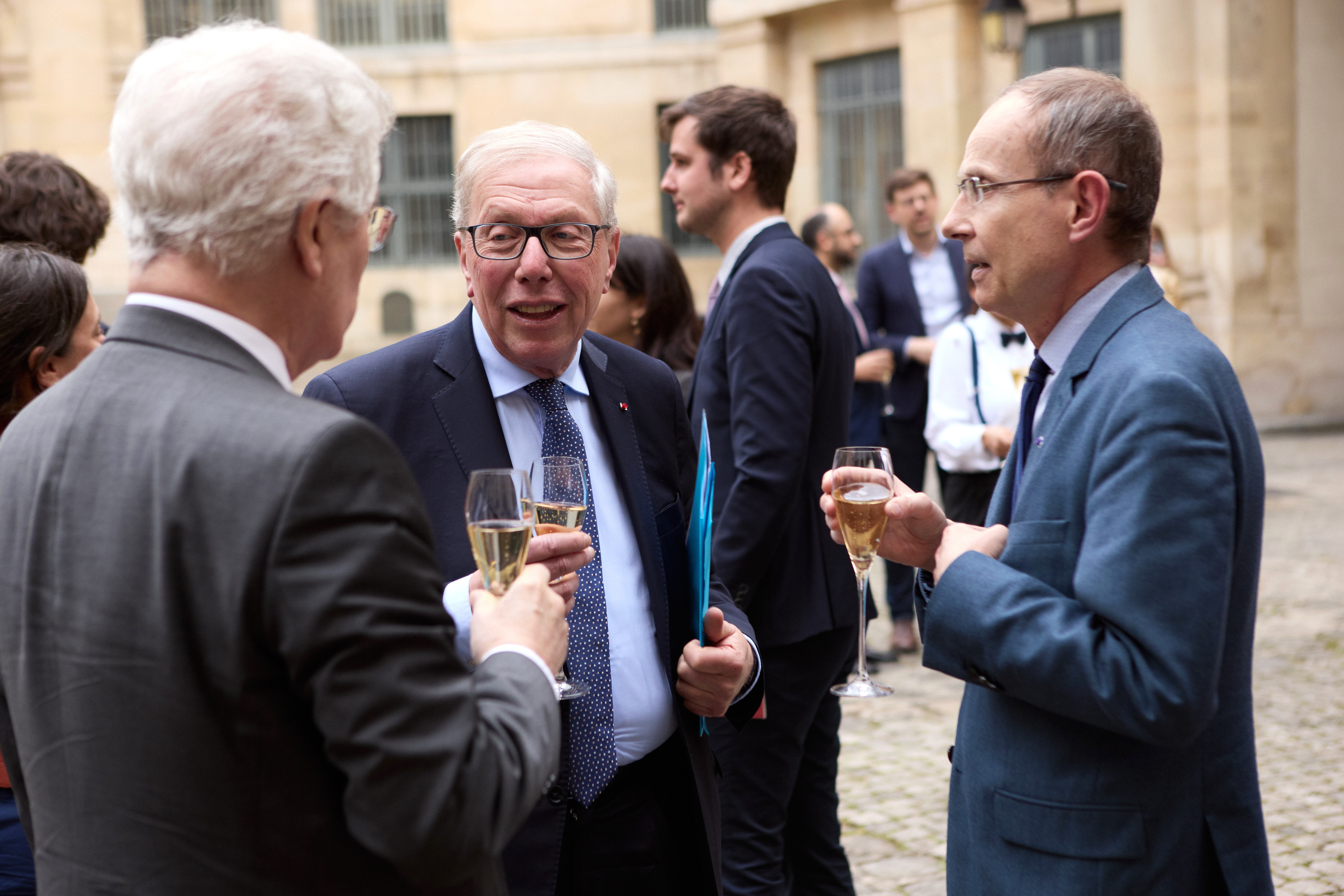 A l’occasion de la fin des travaux de rénovation du siège de la Chambre des notaires de Paris, Bernard Stirn participait, ce mardi 8 avril 2025, avec le correspondant de l’Académie Jean Tarrade, à une réception organisée par le président de la chambre Pierre Tarrade en présence du Garde des Sceaux Gérald Darmanin. Notre Académie noue des liens étroits avec la profession notariale dans le cadre de la Fondation Solon de l’Académie qui organise chaque année, depuis 2013, un concours de légistique à destination des étudiants à l’initiative de la chambre des notaires de Dordogne.