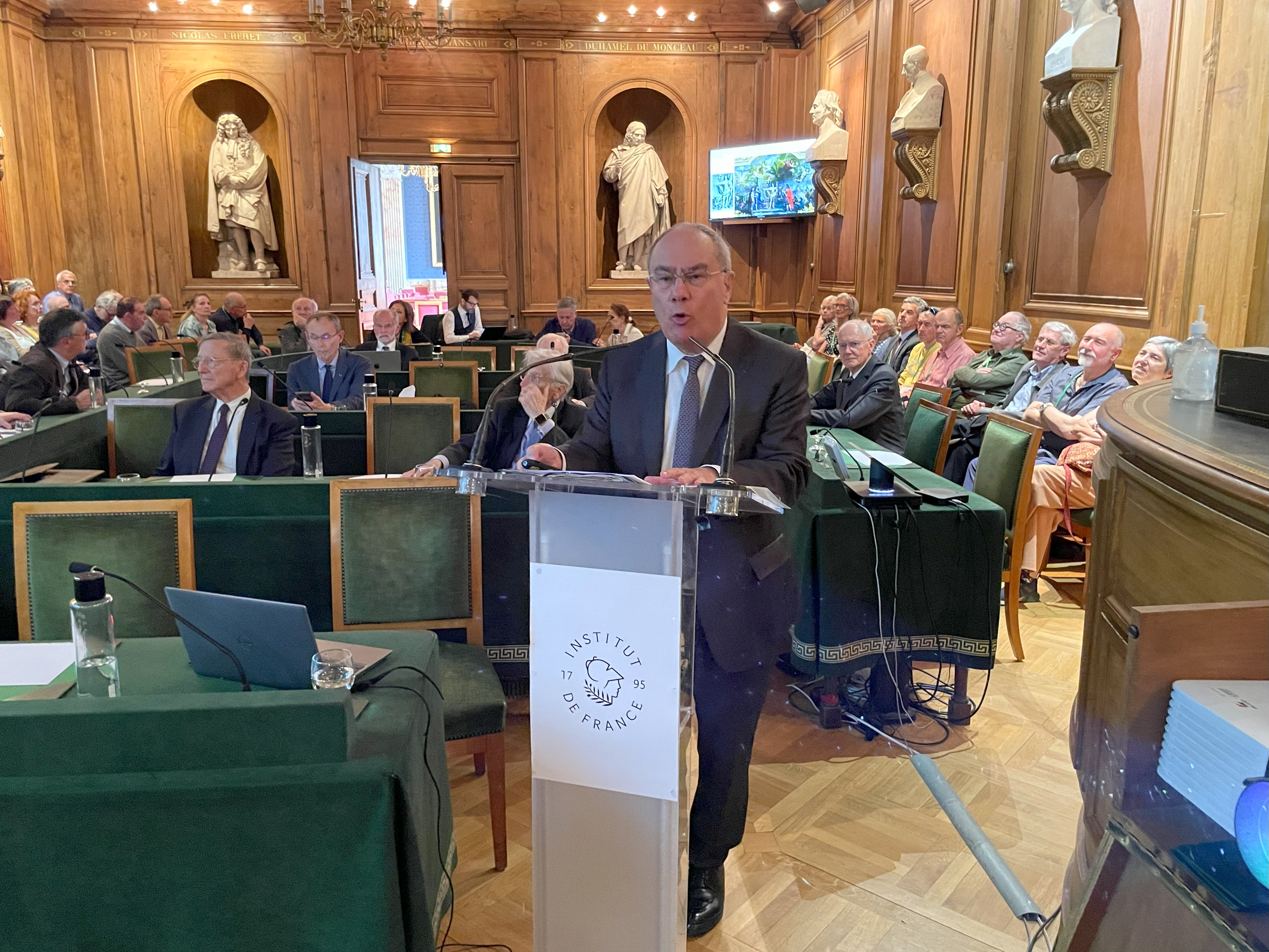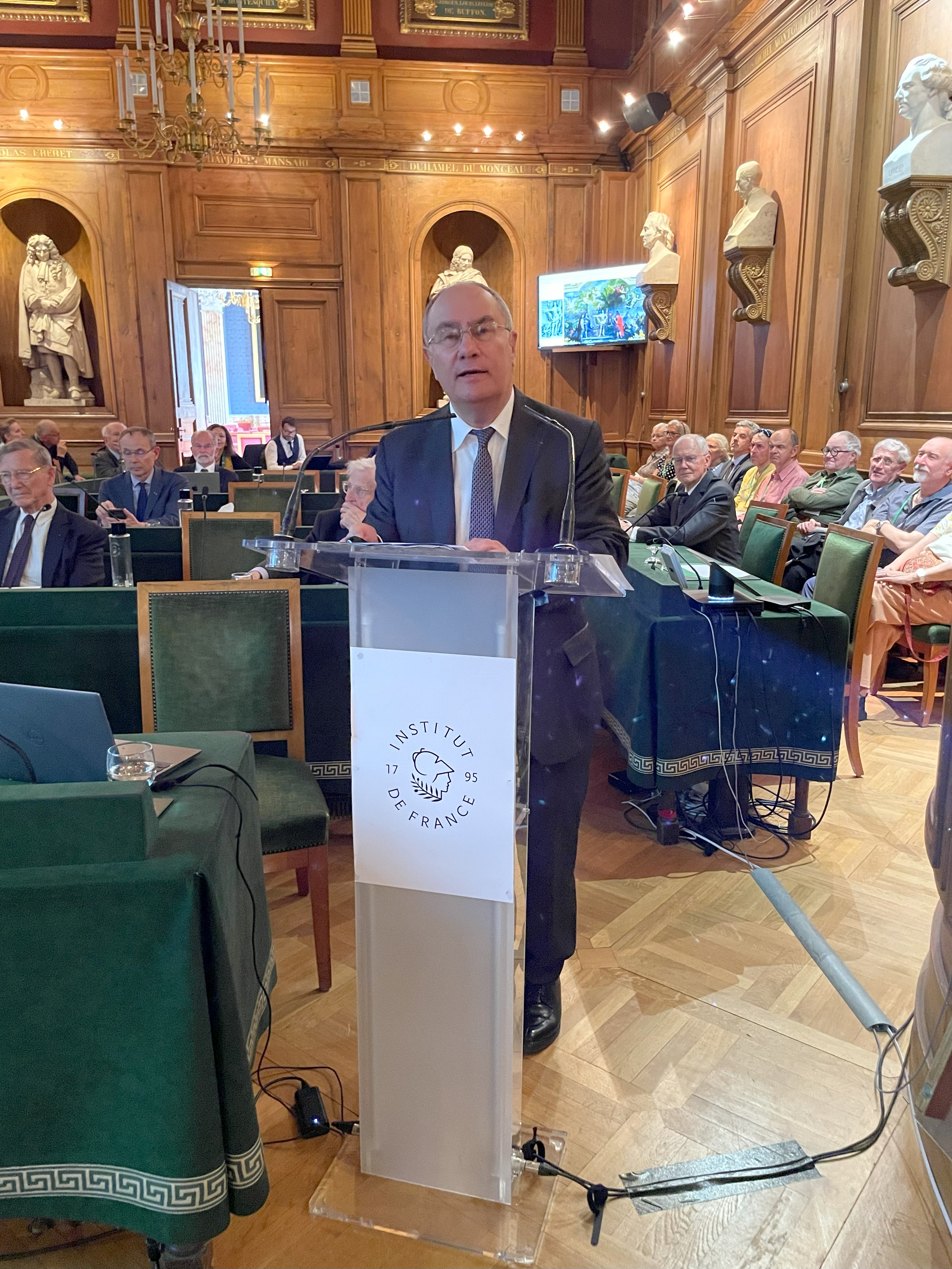 Permettez-moi de saluer d’abord les personnalités qui ont bien voulu assister à cette cérémonie. Des membres d’autres académies de l’Institut de France nous ont rejoints et je m’en réjouis comme le signe même de ce dialogue permanent entre les périodes historiques et entre les disciplines qui fait avancer les savoirs. Merci à toutes celles et à tous ceux qui se trouvent ici réunis : votre présence est une joie immense pour moi. Beaucoup sont venus de loin, de toutes les régions de France, mais aussi d’autres pays : Allemagne, Angleterre, Belgique, Espagne, États-Unis, Irlande, Italie, Hongrie, Luxembourg, Pologne, Suisse et j’en oublie sans doute. Sous cette Coupole, où mes collègues historiens sont venus très nombreux, je suis heureux qu’un hommage soit rendu à l’histoire, aux professeurs d’histoire et au métier d’historien. Ma pensée se tourne vers les amis qui devaient être ici et que des problèmes de santé empêchent d’être avec nous.