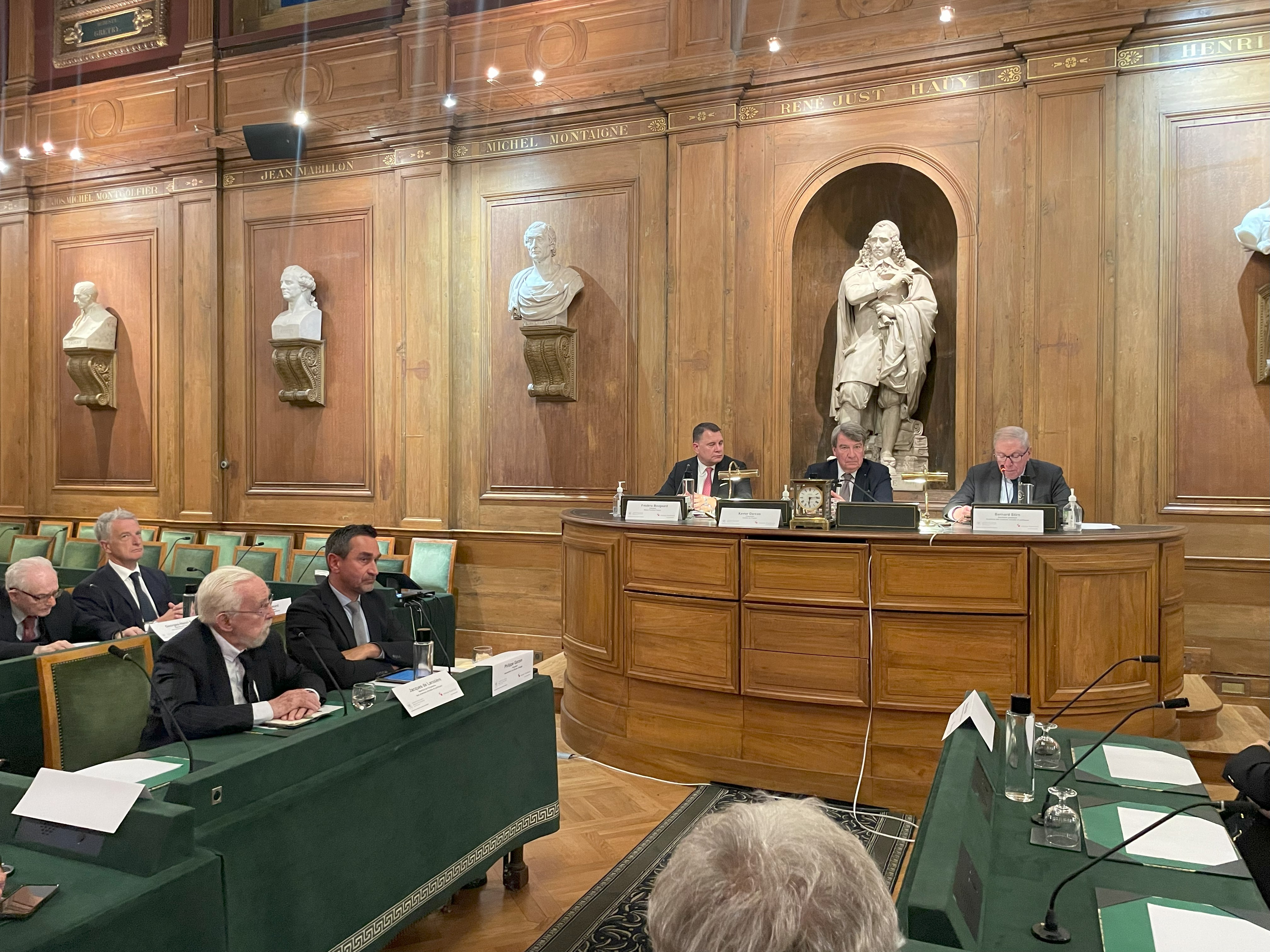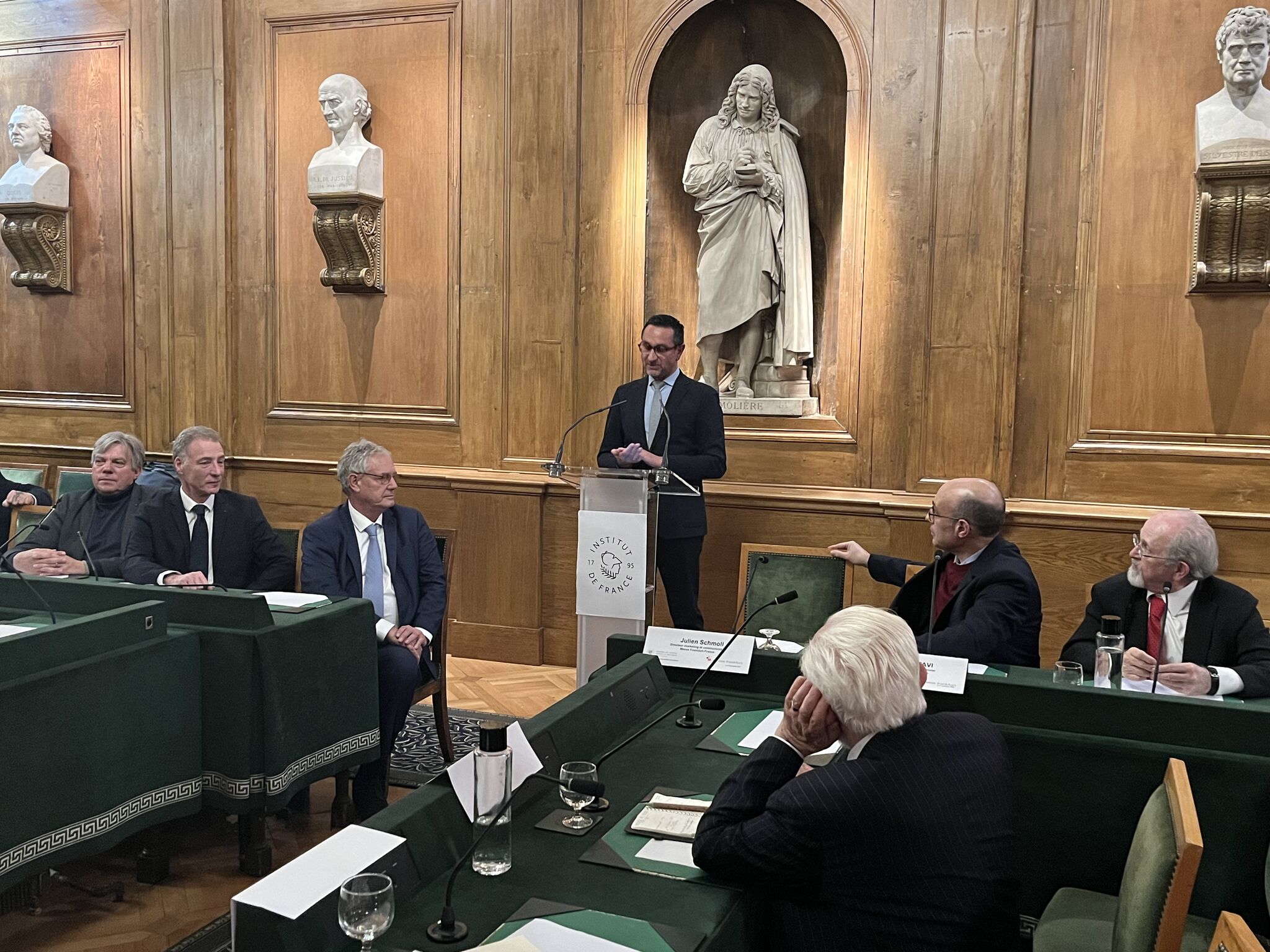 Le prix Messe Frankfurt 2025 a été attribué par un jury composé du Secrétaire perpétuel de l’Académie, Bernard Stirn, du Président de Messe Frankfurt France, Frédéric Bougeard, de son directeur administratif et financier, Xavier Ottavi et de messieurs Jacques de Larosière et Georges-Henri Soutou.